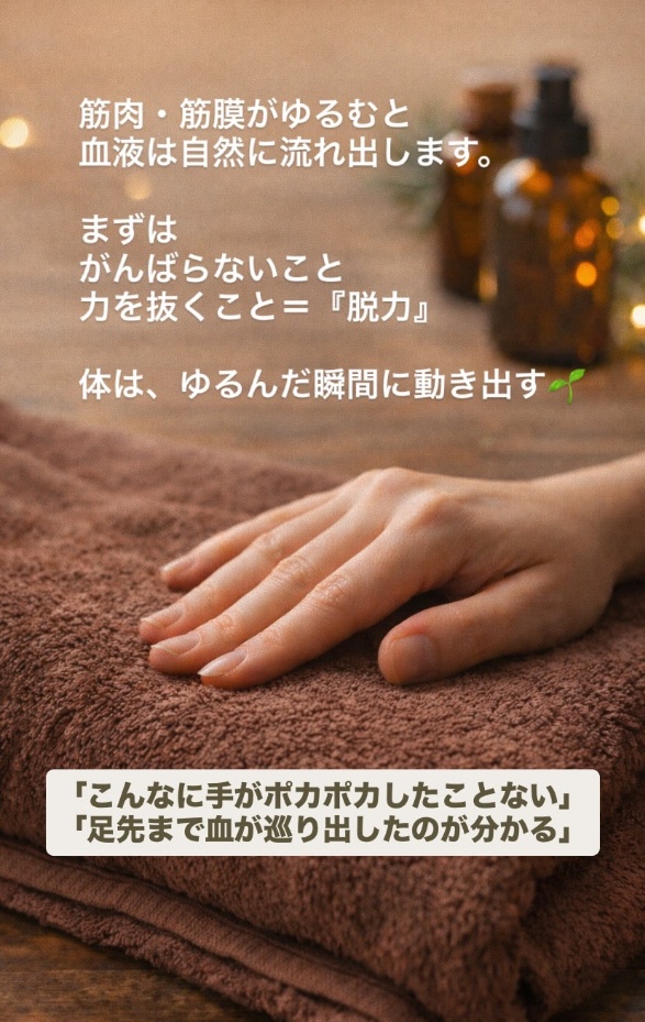 筋膜や軟部〇〇のこわばりが強い状態でした。